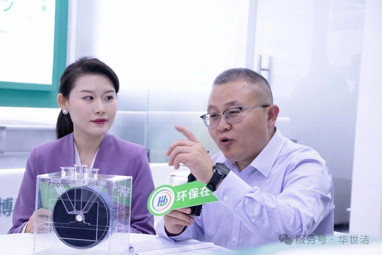 展会期间,华世洁市场部总监陆清受邀参与环保在线现场直播专访。